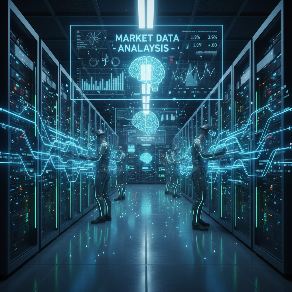 Nowoczesna serwerownia, w której algorytmy AI analizują dane rynkowe – symbol przełomu w automatyzacji analityki.