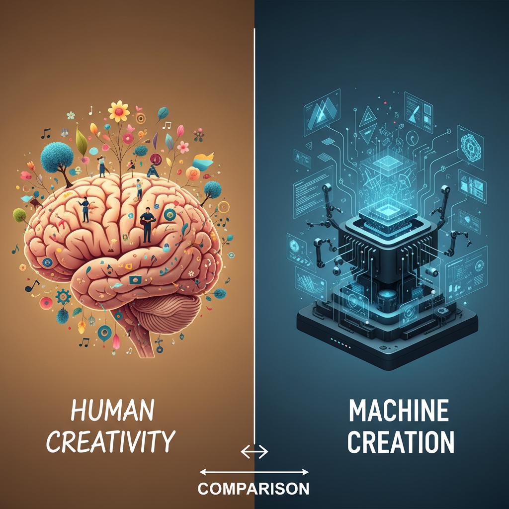 Zdjęcie: Porównanie mózgu człowieka i maszyny. Alt: Porównanie kreatywności człowieka i AI.