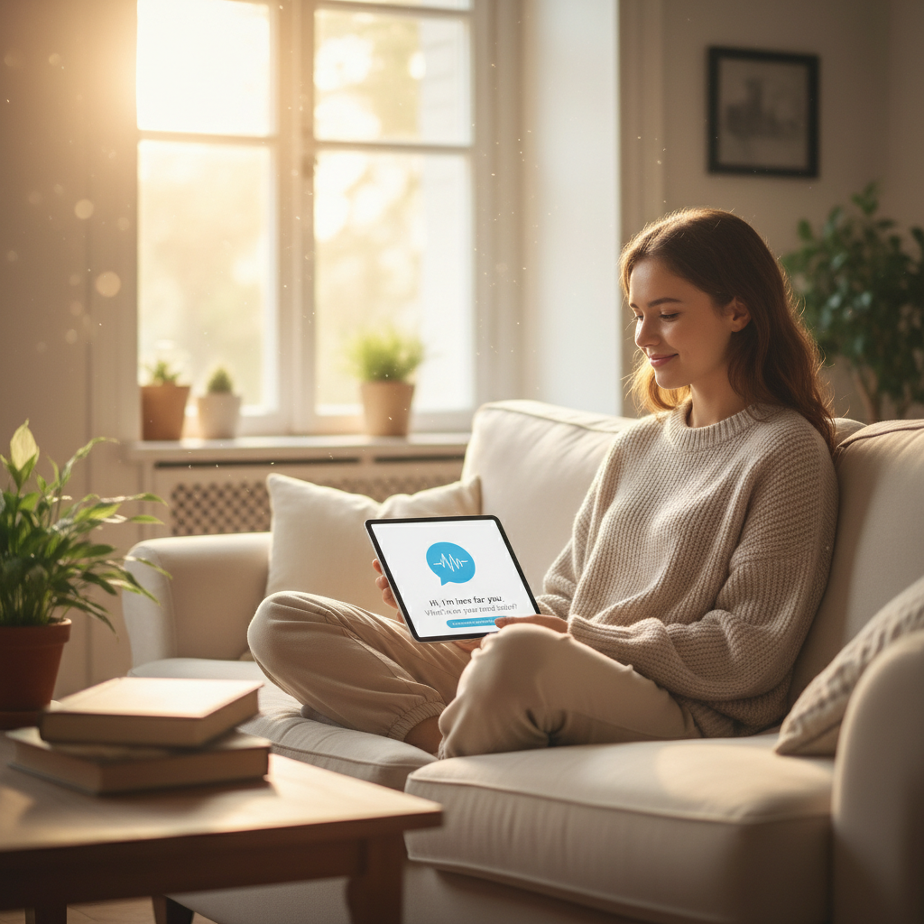 - Krótkie sesje dziennika emocji – chatboty pomagają analizować uczucia i myśli.