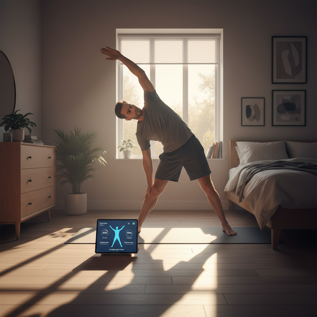 Jeśli AI wykryje brak aktywności, delikatnie motywuje do rozciągania lub krótkiego treningu.