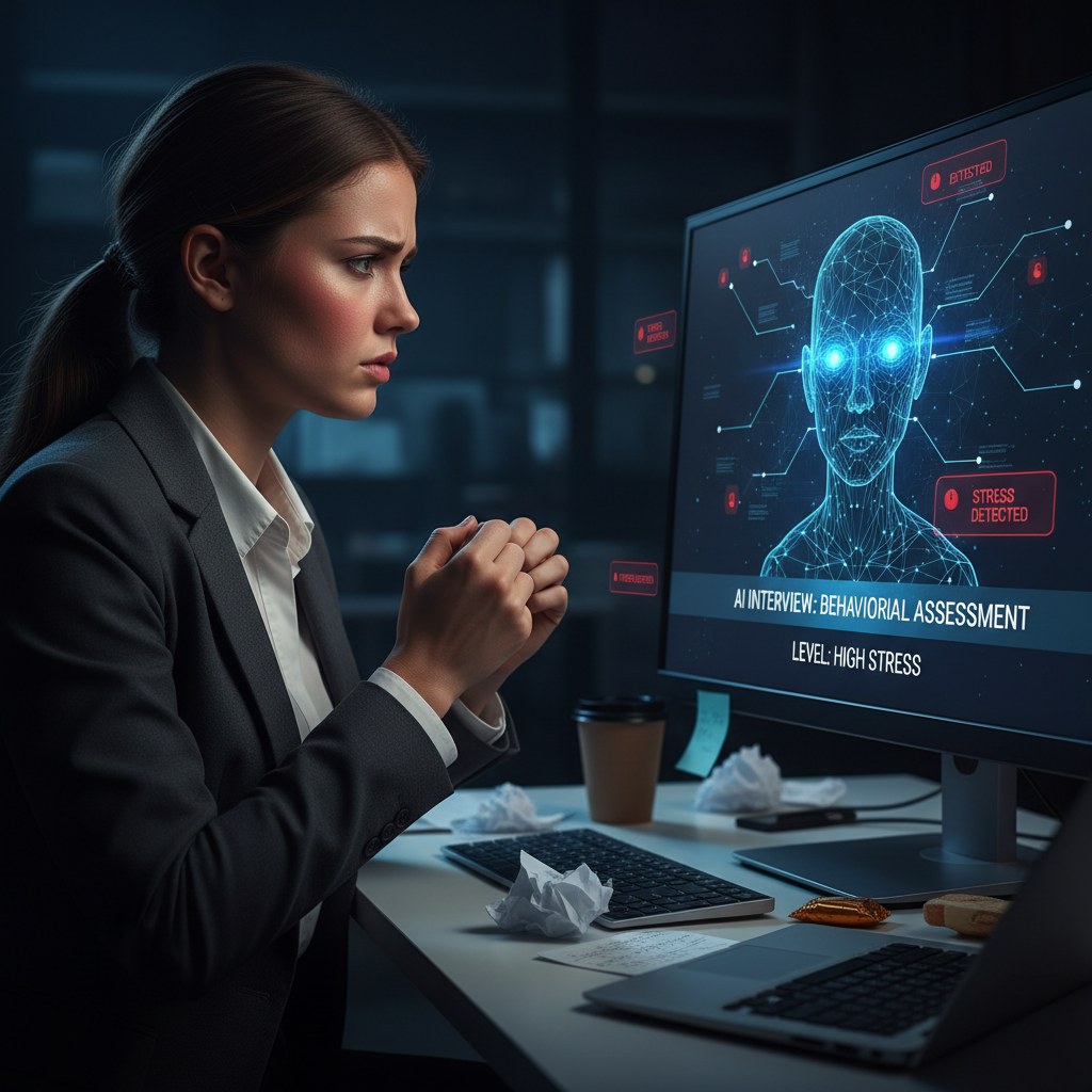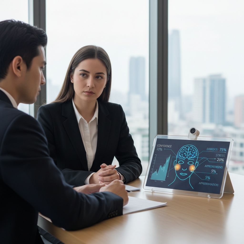 System wychwytuje emocje oraz poziom stresu, co może wpłynąć na ocenę kandydata.