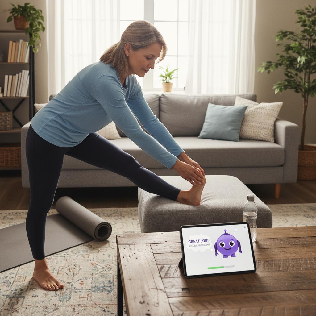 Połączenie realnych ćwiczeń z wirtualnym wsparciem AI, często z elementami grywalizacji i monitorowaniem postępów.