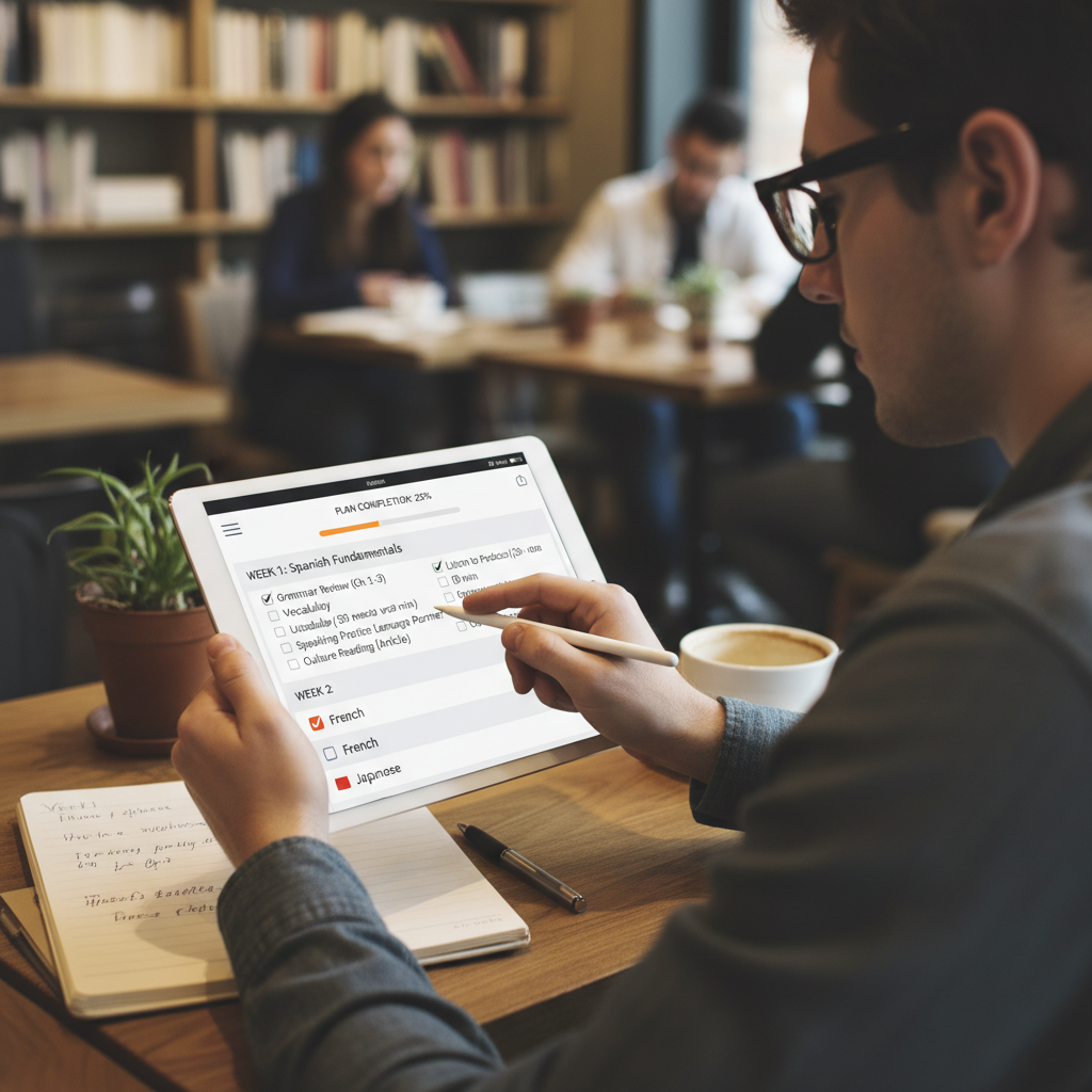 - Mikrocele: Dziel duży cel na małe, osiągalne zadania – np. „10 nowych słów dziennie”.